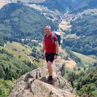 Weiter ging es über die Sommerwiesen hinauf auf den Gipfel des Belchens auf 1414 Meter höhe. Pünktlich zum Mittag machten wir dort oben Brotzeit. Der Abstieg erfolgte über die Südflanke des Belchens. Im Tal des Weiherbachtales wurden wir herzlich bei dort ansässigen Privatleuten mit einer Runde kalten Bier versorgt. Diese Erfrischung nahmen wir gerne bei den Sommerlichen Temperaturen an. Nun ging es hinauf am Waldsee Nonnenmattweiher vorbei zurück um Haldenhof. Den geselligen Abschluss genossen wir auf der Terrasse der Almgastätte Kälblescheuer und ließen den wunderschönen Tag ausklingen. Insgesamt bewältigten wir 18,0 km und 800 hm.