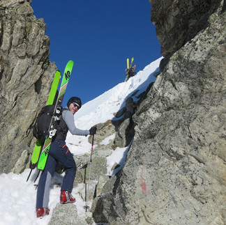 Ins Bieltal, zum Gipfel des Hennekopf 2704m, zum Fuße der Getschner-und Madlenerspitze, ins Klostertal zum Gipfel der Schneeglocke 3323m, durchs Verhupftäli hinauf zur Litzner Scharte 2761m, mit Abfahrt durchs Kromertal hinunter zum Vermunt Stausee 1743m. Zugabe für eine kleine Gruppe, der Übergang zum Verhupfgletscher mit Traumabfahrt in unberührtem Pulverschnee ins Kromertal. Die Tour zur Kromer Scharte durfte nicht fehlen. Die Talfahrt zum Vermunt Stausee, rund 1000 HM, meist in feinstem Pulverschnee.