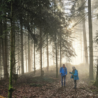 14 Teilnehmer wanderten von Schwaibach aus auf teils verschlungenen Pfaden und durch mystisch anmutende Nebellandschaften. Dann kam sie doch noch - die Sonne - sie begleitete uns zur Berglerhütte, wo ein deftiges Vesper bereit stand und einen zünftigen Abschluss bot.