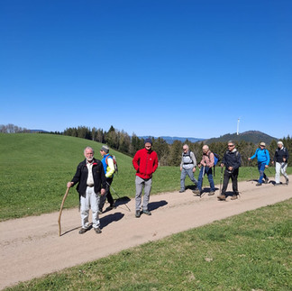 Am 6ten April trafen sich bei bestem Wanderwetter 13 gut gelaunte Bergler in Mühlenbach. Start bei der Kirche, ging es Richtung Landwassereck, anfangs auf dem Bergrücken zwischen Bärenbach und Büchern wanderten wir stets bergauf, bei der Anhöhe zum Guller, wo man eine schöne Aussicht hatte, gab es die erste Stärkung mit Likör und Bier. Vorbei am Schmieders‘ Kreuz und Bücherneckhütte zur Gaststätte Landwassereck. Nach einer guten Stärkung und schöner Aussicht ging es weiter, über das Grandeckle mit schönen Ausblicken. Die 16 km und 600 Hm wurde von allen gut bewältigt, somit waren alle begeistert von der abwechslungsreichen Wanderung.